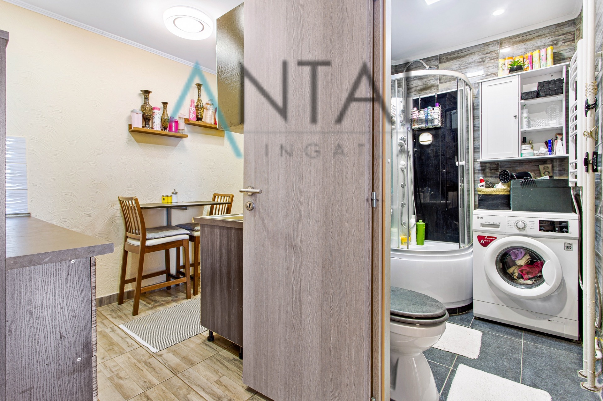 - felújított fürdőszoba stílusos burkolatokkal és praktikus zuhanykabinnal.